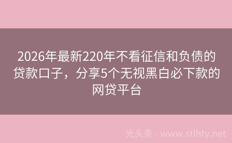 2026年最新220年不看征信和负债的贷款口子,分享5个无视黑白必下款的网贷平台 近年来,随着金融科技的飞速发展,各种网贷平台如雨后春笋般涌现,许多朋友关心的问题是:“220年不看征信和负债的贷款口子?”我就来为大家解答这个疑问,并为大家推荐几个实力强大、信誉良好的220年不看征信和负债的贷款口子,这些平台不仅可以帮助大家解决资金周转的难题,还能让大家在享受便捷服务的同时,不用担...