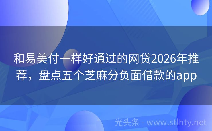 和易美付一样好通过的网贷2026年推荐,盘点五个芝麻分负面借款的app 第一次借款,想要轻松通过?这5个热门好下款的和易美付一样好通过的网贷供你选择:360借条、白猫贷、吉客有钱、通通分期、极融借款。申请简单,审批快速,让你借款无忧。快来试试吧! 2026年的和易美付一样好通过的网贷有:闪电借款、借款宝速贷融、现金网、微粒快借、现金无忧等。 一、闪电借款 闪电借款是一家...
