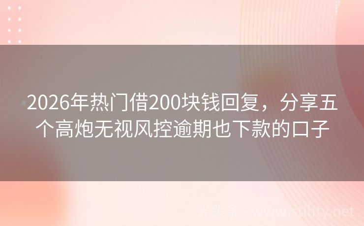 2026年热门借200块钱回复,分享五个高炮无视风控逾期也下款的口子 有时候会遇到几千块钱周转不开的情况,很多人会借助网贷来借钱急用,市面上网贷平台虽然很多都能借款5000马上到账,但是不少平台接入征信后就没那么容易下款了。那么比较好的口子有哪些,本文探讨5个比较好的口子。 2026年的借200块钱回复有:现金侠易贷、借款宝速贷融、易贷通宝、借贷易贷、迅捷宝钱包等。 ...