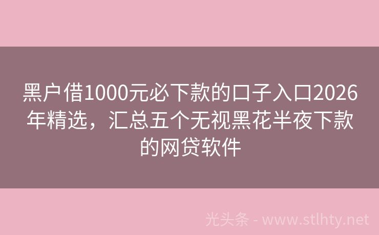 借1000元必下款平台2026年精选,整理五个征信瑕疵也能借网贷轻松下款的平台 “借1000元必下款平台?”这是许多信贷工作人员和借款人共同面临的问题,我就来给大家推荐几个靠谱的借1000元必下款平台,帮助大家解决这个问题。 2026年的借1000元必下款平台有:民贷天下、便捷Pro钱包、琥珀买单、现金秒融途、东方易贷等。 一、民贷天下 民贷天下是长沙银行推出的一款个人消费信贷...