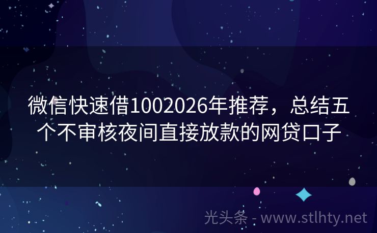 微信快速借1002026年推荐,总结五个不审核夜间直接放款的网贷口子 有时候会遇到几千块钱周转不开的情况,很多人会借助网贷来借钱急用,市面上网贷平台虽然很多都能借款5000马上到账,但是不少平台接入征信后就没那么容易下款了。那么比较好的口子有哪些,本文探讨5个比较好的口子。 2026年的微信快速借100有:融信贷、借款宝快融通宝、现金易贷宝盒、疾融金、借款宝速融宝等。...