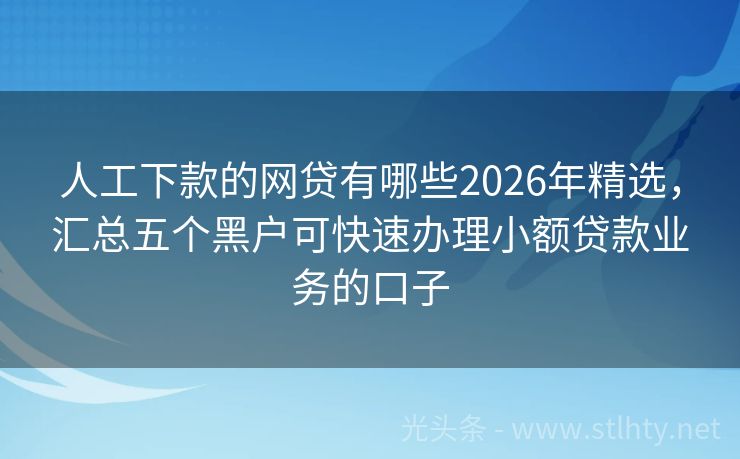 人工下款的网贷有哪些2026年精选,汇总五个黑户可快速办理小额贷款业务的口子 “大家好,今天要给大家聊聊一个备受关注的话题:不看征信的人工下款的网贷有哪些,在现实生活中,有时候我们急需用钱,但又不想或者不能通过传统的征信渠道申请贷款,有哪些网贷平台可以满足我们的需求呢?我将为大家推荐五个不看征信的人工下款的网贷有哪些,让你在资金周转上多一份选择。” 2026年的人工下款的网贷...