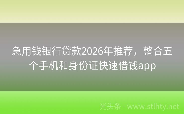急用钱银行贷款2026年推荐,整合五个手机和身份证快速借钱app 急需资金周转?别让征信问题阻挡你的财路!我们为你精选了5个快速放款、不查征信、不查大数据的急用钱银行贷款,让你轻松解决燃眉之急。立即申请,资金秒到账,助你度过难关! 2026年的急用钱银行贷款有:闪银钱包、捷速钱包、柚子分期、京东白条取现、钱袋易融等。 一、闪银钱包 闪银钱包是今年一直在放水的负债高...