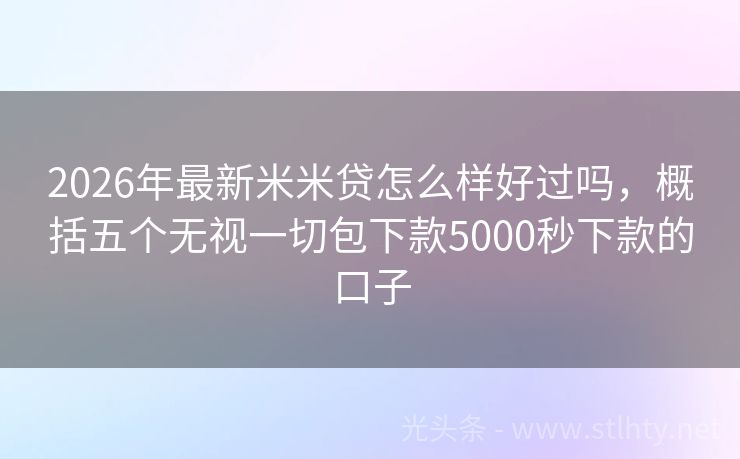 2026年最新米米贷怎么样好过吗,概括五个无视一切包下款5000秒下款的口子 大家好!近年来,金融市场不断涌现出各种贷款平台,2026年火爆米米贷怎么样好过吗成为不少投资者的热门选择,我就来为大家详细介绍几个好的平台,帮助大家更好地了解和选择适合自己的贷款服务。 2026年的米米贷怎么样好过吗有:借钱快、钱袋易融贷、金钥匙、时时钱包贷、分子贷宝盒等。 一、借钱快 借钱快是一款...