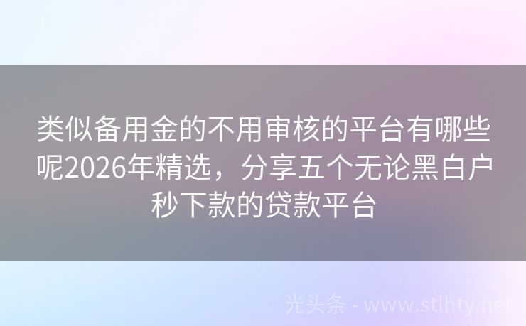 类似备用金的不用审核的平台有哪些呢2026年精选,分享五个无论黑白户秒下款的贷款平台 “借钱最快、利息低、安全可靠”,这是许多借款人在选择借款软件时最关注的三大要素,在市场上,有许多优秀的借款平台,我将为您推荐五个广受好评的类似备用金的不用审核的平台有哪些呢,它们不仅审批速度快,利息合理,而且安全可靠,让您借款无忧。 2026年的类似备用金的不用审核的平台有哪些呢有:沪商财富、东方汇...