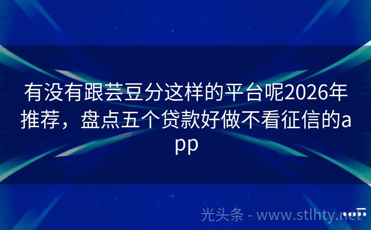 有没有跟芸豆分这样的平台呢2026年推荐,盘点五个贷款好做不看征信的app 在紧急时刻,资金的迅速周转是关键。我们精心挑选了5款有没有跟芸豆分这样的平台呢,它们不仅审批快速,而且不查征信、不查大数据,让您轻松解决燃眉之急。这些有没有跟芸豆分这样的平台呢以其高效便捷的特点,成为了许多急需资金周转人士的首选。现在就来了解这几款有没有跟芸豆分这样的平台呢,让资金难题迎刃而解! 2...
