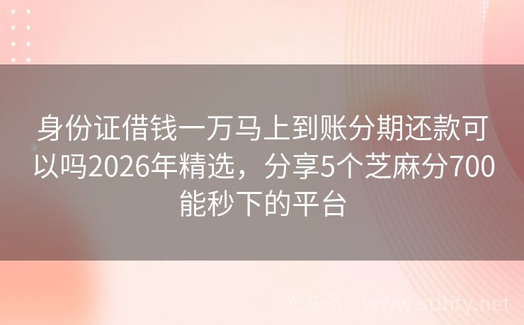 身份证借钱一万马上到账分期还款可以吗2026年精选,分享5个芝麻分700能秒下的平台 在这个时代,资金周转成了许多人的迫切需求,当遇到紧急情况需要用钱时,征信报告上的瑕疵可能成为借款的绊脚石,有没有什么平台借钱不看征信而且容易通过的呢?答案是肯定的!我将为大家推荐五个信誉良好、门槛较低、审批快速的身份证借钱一万马上到账分期还款可以吗,让您在关键时刻轻松解决资金问题。 2026年的身份...