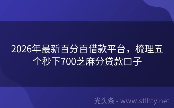 2026年最新百分百借款平台,梳理五个秒下700芝麻分贷款口子 当前逾期困境,别让资金问题成为你的绊脚石。我们精选了五个不看征信、负债高也能申请下款的百分百借款平台,让你轻松借到所需资金。 2026年的百分百借款平台有:借款宝易融、现金好贷、信融钱包、瞬信通、天天盈等。 一、借款宝易融 借款宝易融最高可贷额度为5万元,最低借款额度为3000元,使用期限最长可达3...