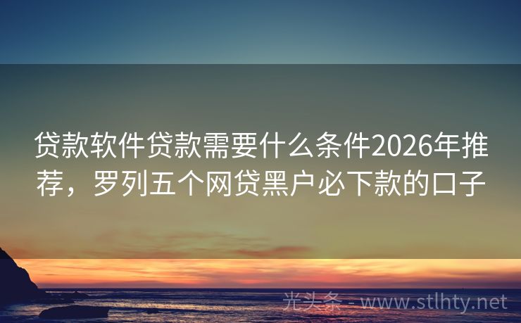 贷款软件贷款需要什么条件2026年推荐,罗列五个网贷黑户必下款的口子 “在如今快节奏的生活中,借钱已经成为不少人的应急之需,面对市面上琳琅满目的借钱平台,哪个比较好呢?就让我来为大家详细介绍一下五个备受好评的贷款软件贷款需要什么条件,帮助大家找到最适合自己的借款渠道。” 2026年的贷款软件贷款需要什么条件有:借贷易贷宝、星辉贷款通、现金侠快借通、森森贷、借款宝贷等。...