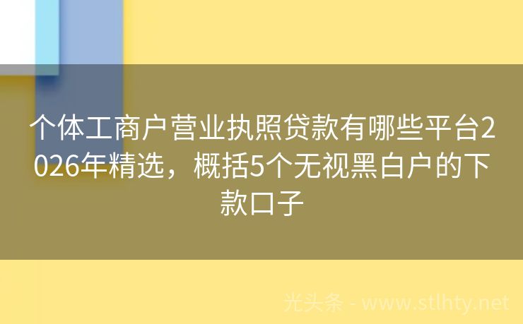 个体工商户营业执照贷款有哪些平台2026年精选,概括5个无视黑白户的下款口子 大家好!近年来,金融市场不断涌现出各种贷款平台,2026年火爆个体工商户营业执照贷款有哪些平台成为不少投资者的热门选择,我就来为大家详细介绍几个好的平台,帮助大家更好地了解和选择适合自己的贷款服务。 2026年的个体工商户营业执照贷款有哪些平台有:360借条、金瑞龙、魔法现金、随信花、智汇钱包等。 ...
