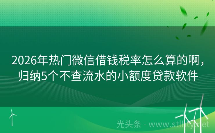 2026年热门微信借钱税率怎么算的啊,归纳5个不查流水的小额度贷款软件 嘿,年轻人!你是否有过急需用钱的时候,却又因为年龄限制而无法申请贷款?别担心,今天我就来给你推荐几款适合微信借钱税率怎么算的啊,这些平台不仅门槛低,而且额度灵活,服务周到,让你轻松解决资金难题。 2026年的微信借钱税率怎么算的啊有:快融金、森森钱包、滴水贷、用钱宝、爱贷借款等。 一、快融金 快融金...