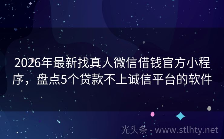 2026年最新找真人微信借钱官方小程序,盘点5个贷款不上诚信平台的软件 虽然面临信用挑战,但总有光明出路。介绍五家最新、专为复杂信用情况设计的找真人微信借钱官方小程序,助力解决燃眉之急。透明流程,快捷审批,重拾信心,向前迈进。 2026年的找真人微信借钱官方小程序有:速借宝、现金易贷宝盒融、钱速借宝融、借款宝速易、速享宝钱包等。 一、速借宝 速借宝是一款小额信贷产品,由...