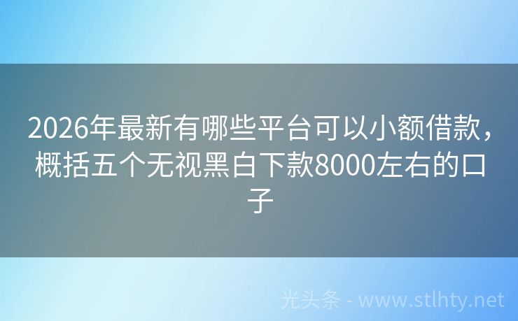 2026年最新有哪些平台可以小额借款,概括五个无视黑白下款8000左右的口子 在现代社会中,征信记录在贷款申请中扮演着至关重要的角色。然而,很多人由于各种原因,征信记录不佳,导致贷款申请难以通过。那么有哪些平台可以小额借款也可以借钱的小额贷款的口子有哪些,深度评述5个有哪些平台可以小额借款也可以借钱的小额贷款的口子。 2026年的有哪些平台可以小额借款有:瑞信宝Pro钱包、鑫...