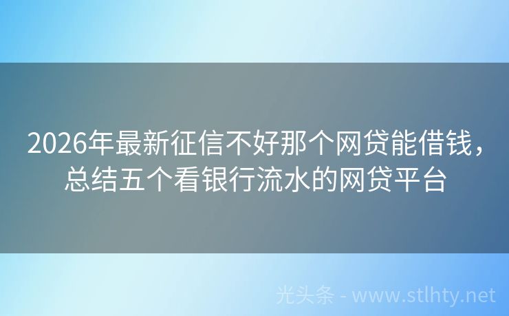 2026年最新征信不好那个网贷能借钱,总结五个看银行流水的网贷平台 “大家好!今天要给大家推荐几个特别的征信不好那个网贷能借钱,它们都有一个共同的特点——借一万不看征信不看大数据,无论你的信用记录如何,这些平台都能为你提供便捷的借款服务,我们就来详细了解这些平台的特点、额度和优势,帮助你轻松解决资金问题!” 2026年的征信不好那个网贷能借钱有:闪电借款、易贷宝速贷...