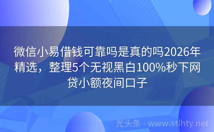微信小易借钱可靠吗是真的吗2026年精选,整理5个无视黑白100%秒下网贷小额夜间口子 大家好,今天我要给大家聊聊一个热门话题——“微信小易借钱可靠吗是真的吗”,在众多借款平台上,确实有一些平台为了提高用户体验,简化了借款流程,让借款变得更加便捷,下面,我将为大家详细介绍五个无需验证码即可借款的平台,让我们一起来看看这些平台的额度、优势和特色服务吧! 2026年的微信小易借钱可靠吗是真...