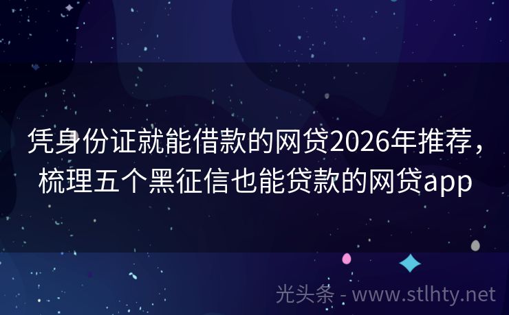 凭身份证就能借款的网贷2026年推荐,梳理五个黑征信也能贷款的网贷app 即便身负重担,也有光芒照耀之路。发现五家特设低门槛小额贷款服务,无视信用困扰,助力重启人生。贴心设计,无压体验,让资金流通无障碍。那么信用花负债高的人在哪里可以贷款?整理5个低门槛的小额贷款不看征信。 2026年的凭身份证就能借款的网贷有:翼支付钱包、易融贷通、森森钱包、钱速借融途、小象快贷等。 一...