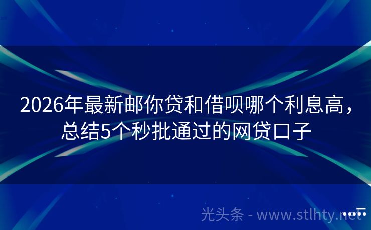 2026年最新邮你贷和借呗哪个利息高,总结5个秒批通过的网贷口子 “邮你贷和借呗哪个利息高”这是许多借款人在寻找快速贷款渠道时最关心的问题,我就来为大家推荐几个信誉良好、下款速度快的平台,让您在急需资金时能够轻松解决燃眉之急。 2026年的邮你贷和借呗哪个利息高有:钱袋速融、口袋金贷、甄易借、捷信易借、现金易贷通宝等。 一、钱袋速融 钱袋速融有逾期有负债可以借钱的...