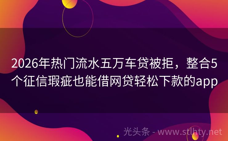 2026年热门流水五万车贷被拒,整合5个征信瑕疵也能借网贷轻松下款的app 面对征信难题,急需资金周转?别担心!我们精选五大流水五万车贷被拒,专为征信黑户设计,不查大数据,不上征信,下款秒过,轻松解决您的燃眉之急。诚信借贷,灵活还款,让您的财务困境迎刃而解。立即申请,开启您的资金自由之旅! 2026年的流水五万车贷被拒有:翼贷钱包、钱袋速融宝、钱速借通、金易Pro钱包、微微...
