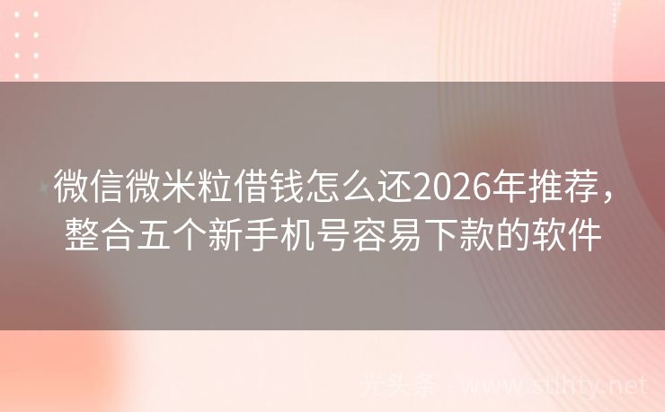 微信微米粒借钱怎么还2026年推荐,整合五个新手机号容易下款的软件 “借钱这件大事,谁不想找到一个既方便又快捷,还不看负债和征信的平台呢?在这个问题上,我们为您精心挑选了几个热门平台,让您借钱无忧,轻松解决资金难题,下面,就让我们一起来看看这些备受好评的微信微米粒借钱怎么还吧!” 2026年的微信微米粒借钱怎么还有:小金鹤分期、口袋贷、易捷Pro钱包、度小满金融、闪...