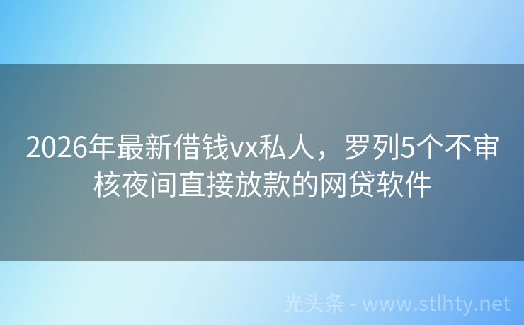 2026年最新借钱vx私人,罗列5个不审核夜间直接放款的网贷软件 大家好,最近有很多人都在问:“借钱vx私人?”我就来给大家推荐几个不需要查看征信就能借款的平台,帮助大家解决资金周转的烦恼,以下这些平台不仅操作简便,而且额度灵活,让你轻松借款,无忧还款。 2026年的借钱vx私人有:现金盒子、现金易贷、速贷通、闪贷速借融、甄易借通等。 一、现金盒子 现金盒子是一个...