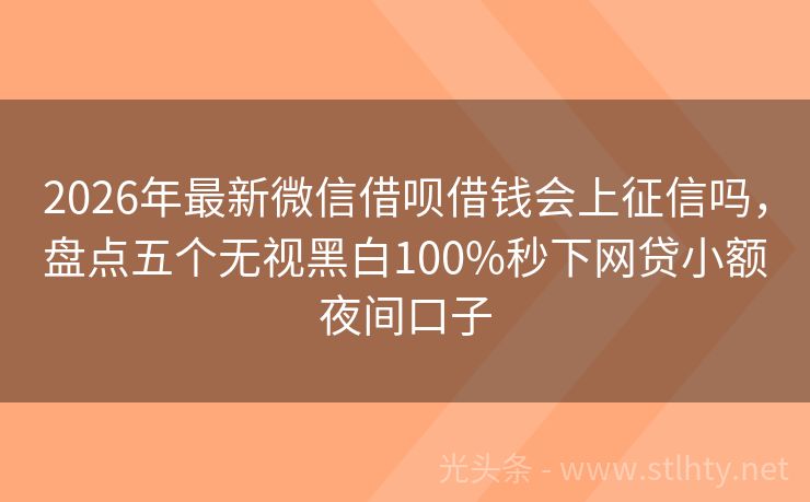 2026年最新微信借呗借钱会上征信吗,盘点五个无视黑白100%秒下网贷小额夜间口子 “大家好,今天咱们来聊聊‘微信借呗借钱会上征信吗’这个话题,在众多的小额贷款平台中,哪些平台既可靠又容易获得贷款呢?我将为大家详细介绍五个备受好评的平台,帮您轻松解决资金问题。” 2026年的微信借呗借钱会上征信吗有:钱袋瞬借、钱鼓鼓速借、恒瑞财富网、爱贷借款、月月盈等。 一、钱袋瞬借 钱袋瞬借是可...