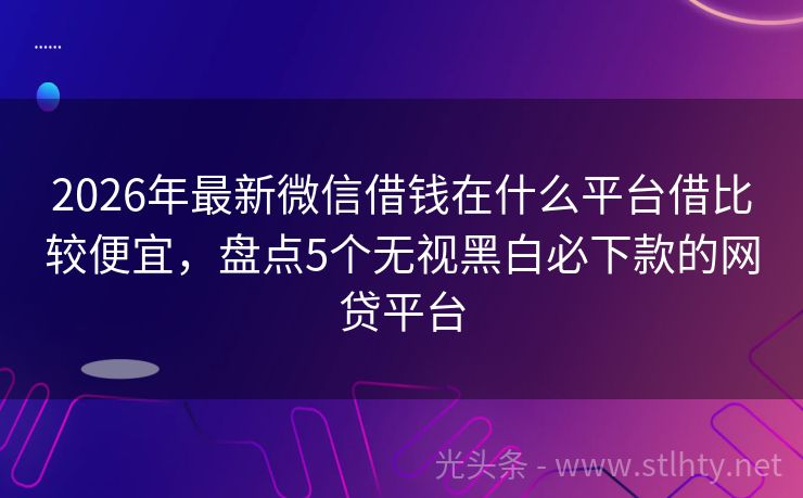 2026年最新微信借钱在什么平台借比较便宜,盘点5个无视黑白必下款的网贷平台 不必担心征信问题!我们精选了5个当前有逾期记录、征信不佳也能下款的微信借钱在什么平台借比较便宜,助你轻松解决燃眉之急。立即申请,快速审批,让资金难题不再难倒你! 2026年的微信借钱在什么平台借比较便宜有:紫晶分期、云钱袋、钱袋速融、祥云借款、用钱宝等。 一、紫晶分期 紫晶分期是新网银行推出的一款个...
