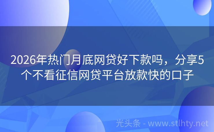 2026年热门月底网贷好下款吗,分享5个不看征信网贷平台放款快的口子 在如今这个社会,资金周转成为了许多人的日常需求,提到“容易下款的贷款软件”,相信大家都在寻找一个既便捷又可靠的月底网贷好下款吗,我就为大家推荐五个深受用户喜爱的贷款平台,它们不仅审批速度快,而且额度灵活,服务周到,下面,让我们一起来看看这五个月底网贷好下款吗的具体情况吧! 2026年的月底网贷好下款...