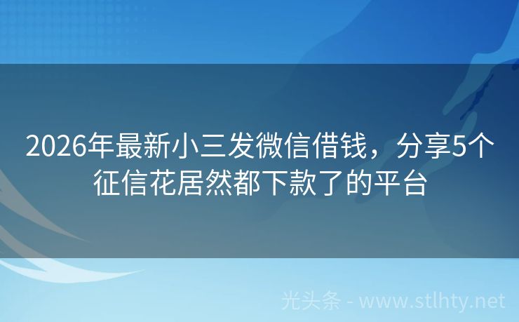 2026年最新小三发微信借钱,分享5个征信花居然都下款了的平台 在急需资金周转的时候,黑户也能轻松借到钱!以下是5个不审核直接下款的小三发微信借钱,让您不再为资金烦恼。立即申请,快速解决您的资金问题 2026年的小三发微信借钱有:鑫贷钱包、现金易贷宝融、易借宝、借钱宝盒、信贷通速借等。 一、鑫贷钱包 鑫贷钱包是征信废了也能贷款的平台,申请时无视黑白户,也是持牌金...