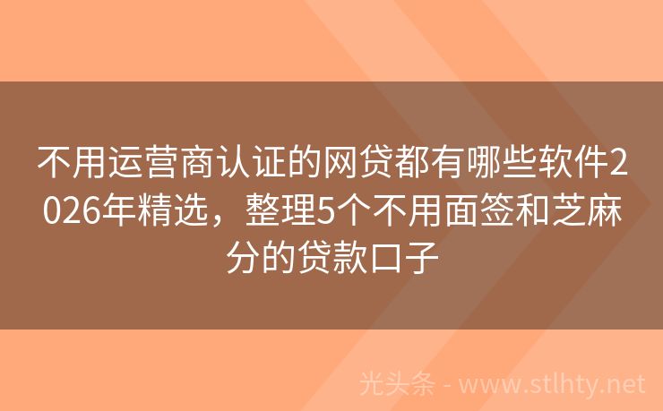 不用运营商认证的网贷都有哪些软件2026年精选,整理5个不用面签和芝麻分的贷款口子 在当下这个信息时代,不用运营商认证的网贷都有哪些软件为大众提供了极大的便利,让人们可以轻松快捷地解决资金需求,就让我来为大家详细介绍一下市面上口碑较好的五个不用运营商认证的网贷都有哪些软件,帮助大家找到适合自己的不用运营商认证的网贷都有哪些软件,它们各有特色,快来跟我一起看看吧! 2026年的不用运...