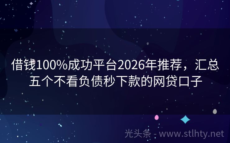 借钱100%成功平台2026年推荐,汇总五个不看负债秒下款的网贷口子 寻找快速放款的借钱100%成功平台?试试这5个借钱100%成功平台,花户也能轻松线上借款。无需繁琐流程,资金迅速到账,解决您的急需之忧! 2026年的借钱100%成功平台有:紫晶信贷、现金侠快融、拍拍贷、现金中心、替你还等。 一、紫晶信贷 紫晶信贷是一款个人消费信贷产品,由紫晶信贷支付有限公司推出。...