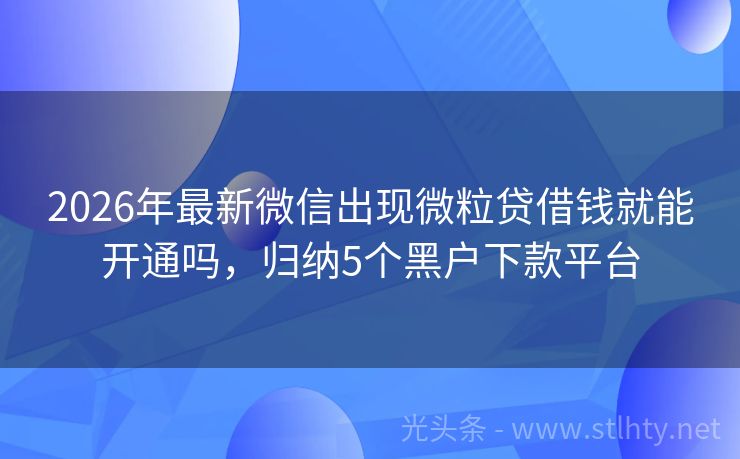 2026年最新微信出现微粒贷借钱就能开通吗,归纳5个黑户下款平台 “微信里可以借钱吗?”这是许多人在急需资金时常常会问的问题,答案是肯定的,微信里不仅有便捷的社交功能,还隐藏着许多实力强大的金融服务平台,就让我来为您详细介绍五个在微信上可以借钱的微信出现微粒贷借钱就能开通吗,帮助您轻松解决资金难题。 2026年的微信出现微粒贷借钱就能开通吗有:快易贷宝、钱袋速贷融...