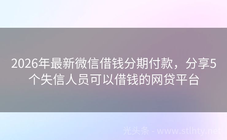 2026年最新微信借钱分期付款,分享5个失信人员可以借钱的网贷平台 全新篇章开启,五项精选低利率微信借钱分期付款,面向双重挑战者敞开怀抱,以诚信与公正重塑个人财务生态。每一步选择都蕴含改变命运的无限可能,从此刻起步,迎接光芒万丈的人生转折点。 2026年的微信借钱分期付款有:钱袋易借通、闪借快行、现金易贷、小米易贷、借钱快等。 一、钱袋易借通 钱袋易借通是备用金10...