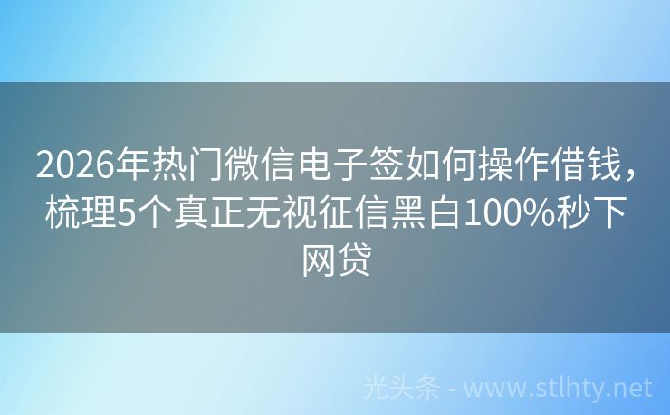 2026年热门微信电子签如何操作借钱,梳理5个真正无视征信黑白100%秒下网贷 寻找可靠的财务伙伴,从这里开始。为您精选多家信誉卓著的贷款应用,小额借款轻松搞定,便捷快速到账。透明条款,专业服务,让您的每笔交易安心无忧。 2026年的微信电子签如何操作借钱有:瑞信宝Pro钱包、鑫融钱包、瞬借宝贷、小象快贷、钱袋速易等。 一、瑞信宝Pro钱包 瑞信宝Pro钱包是一款信用卡代偿产品...