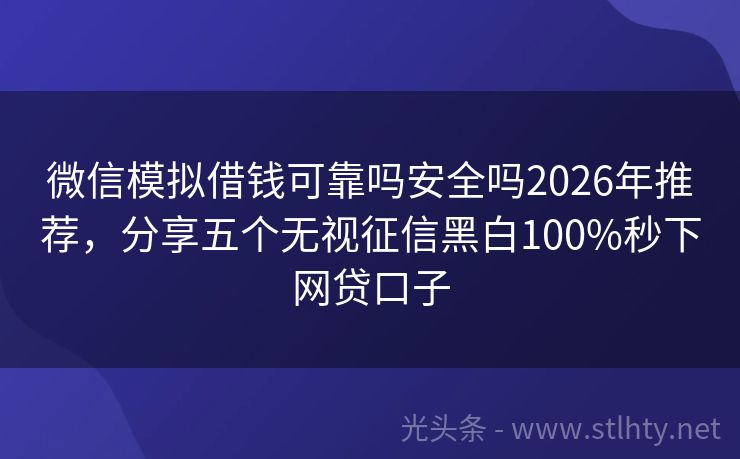 微信模拟借钱可靠吗安全吗2026年推荐,分享五个无视征信黑白100%秒下网贷口子 急需资金?别让繁琐的手续耽误你的事。我们精选了五个没有重大逾期就能秒下款的微信模拟借钱可靠吗安全吗,让你轻松解决资金难题。 2026年的微信模拟借钱可靠吗安全吗有:金宝盒贷、畅贷宝Pro钱包、借贷易贷宝、米米贷、樱桃钱包等。 一、金宝盒贷 金宝盒贷是一款消费分期产品,由年轻白领人群推出。贷款额度一般...