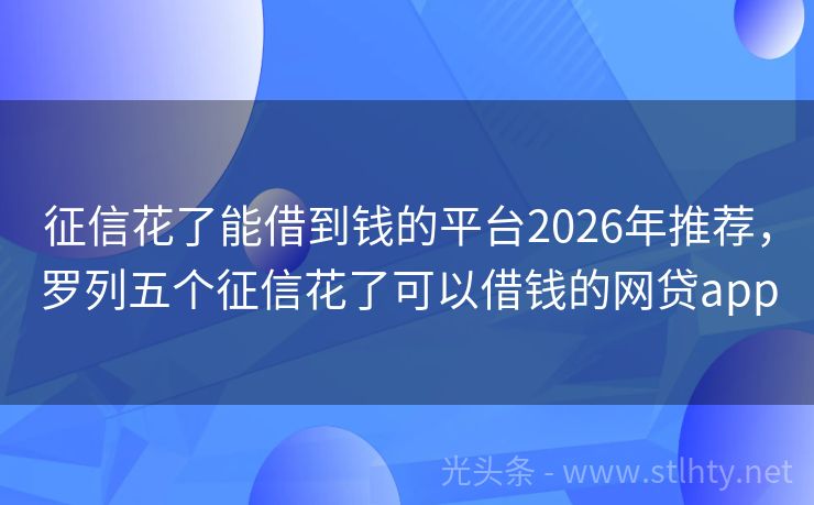 征信花了能借到钱的平台2026年推荐,罗列五个征信花了可以借钱的网贷app 小额融资,大显身手之际。精选五款快速审批,易于通过的征信花了能借到钱的平台,助您轻松应对日常资金周转,无需繁琐流程,即刻享受便捷。那么好批的小额贷款有哪些?试试这5个审批快好通过的贷款。 2026年的征信花了能借到钱的平台有:乐享宝、小金象分期、闪贷通、民生易贷、微博借钱等。 一、乐享宝 乐享宝是某...