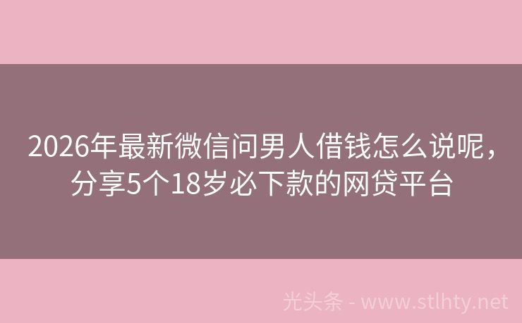 2026年最新微信问男人借钱怎么说呢,分享5个18岁必下款的网贷平台 当前逾期能申请网贷吗?这是许多借款人在面临资金困境时心中的疑问,市场上有很多网贷平台对逾期用户也提供了借款服务,下面,我将为大家推荐五个信誉良好、服务优质的微信问男人借钱怎么说呢,帮助您解决资金问题。 2026年的微信问男人借钱怎么说呢有:小米分期宝、钱袋快融宝、微粒快借、借贷易宝、现金贷速易等。 ...