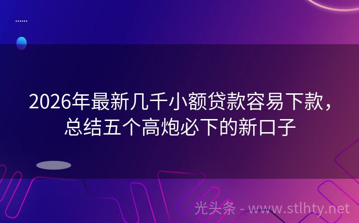 2026年最新几千小额贷款容易下款,总结五个高炮必下的新口子 2026年,新气象带来新希望。面对过去,我们不应被束缚。精选五家创新金融几千小额贷款容易下款,它们无视传统征信壁垒,专注于个体潜力与未来,提供即刻解决方案,助力每位勇者迈步向前,实现心中所想。 2026年的几千小额贷款容易下款有:辉誉金融、钱速借通、钱进快贷、滴水贷、美团生活费等。 一、辉誉金融 辉...