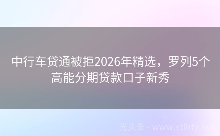 中行车贷通被拒2026年精选,罗列5个高能分期贷款口子新秀 招联金融下款难?试试这5个不看征信、审核易过的中行车贷通被拒:360借条、白猫贷、吉客有钱、通通分期、极融借款。申请简单,审批快速,让你轻松借款。快来试试吧! 2026年的中行车贷通被拒有:微粒钱包、快捷宝贷、翼支付钱包、小象快贷、现金白卡等。 一、微粒钱包 微粒钱包是渤海银行旗下的公积金信贷产品,...