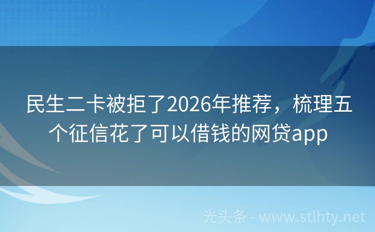 民生二卡被拒了2026年推荐,梳理五个征信花了可以借钱的网贷app 2026来,随着金融科技的不断发展,越来越多的人开始关注到个人征信的重要性,征信良好的人,往往能在贷款申请时享受到更低的利率和更高的额度,就让我们围绕“的民生二卡被拒了”这一主题,为大家推荐几个热门的的民生二卡被拒了,这些平台不仅审批速度快,而且额度灵活,服务周到,相信一定能满足您的贷款需求。 20...