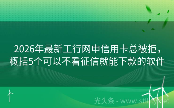 2026年最新工行网申信用卡总被拒,概括5个可以不看征信就能下款的软件 “大家好,今天咱们聊一聊“工行网申信用卡总被拒”这个话题,在现实生活中,很多朋友因为征信记录不佳,想要贷款买车时遇到了难题,不用担心,今天我为大家推荐五个的工行网申信用卡总被拒,它们专为有征信问题的用户提供服务,帮助大家顺利实现购车梦,让我们一起来看看这五个平台的具体情况吧!” 2026年的工行网申...