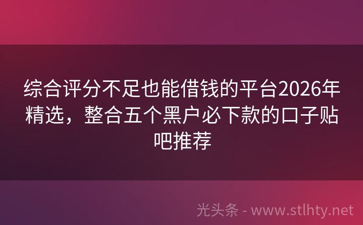 综合评分不足也能借钱的平台2026年精选,整合五个黑户必下款的口子贴吧推荐 别担心!我们精选5大安全快速综合评分不足也能借钱的平台,不看大数据,直接放款。轻松解决您的资金难题,让您借钱无忧,用钱更自由。快来体验吧! 2026年的综合评分不足也能借钱的平台有:钱贷乐、安心易贷、现金秒融贷、借了么快贷、现金秒借融途等。 一、钱贷乐 钱贷乐100%可以借钱的网贷最重要的是借钱50...