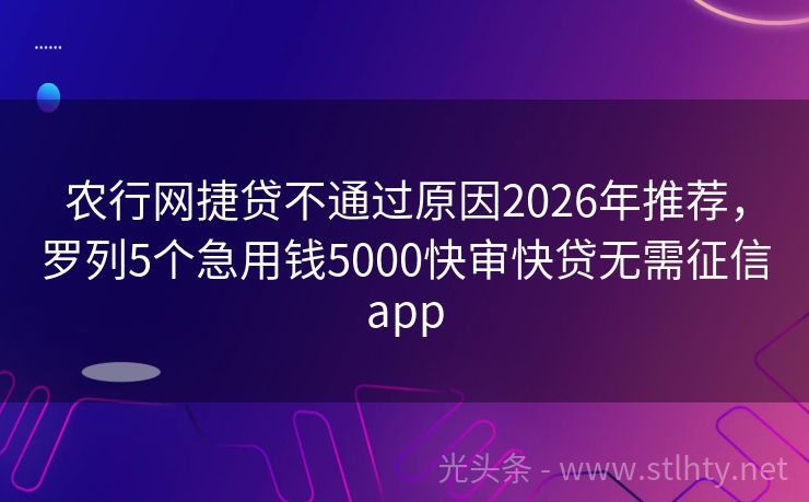 农行网捷贷不通过原因2026年推荐,罗列5个急用钱5000快审快贷无需征信app 大家好!近年来,由于各种原因,不少朋友的征信记录出现了一些问题,导致综合评分不足,这在申请贷款时往往会遇到困难,但别担心,今天我要给大家推荐几个即使征信花了也能尝试借款的农行网捷贷不通过原因,帮助大家解决资金周转的烦恼,就让我们一起来看看这些农行网捷贷不通过原因吧! 2026年的农行网捷贷不通过原因...