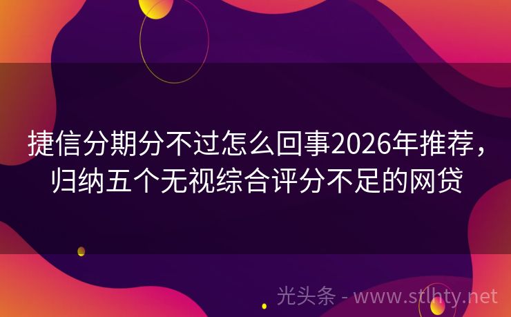 捷信分期分不过怎么回事2026年推荐,归纳五个无视综合评分不足的网贷 在当下这个信息时代,捷信分期分不过怎么回事为大众提供了极大的便利,让人们可以轻松快捷地解决资金需求,就让我来为大家详细介绍一下市面上口碑较好的五个捷信分期分不过怎么回事,帮助大家找到适合自己的捷信分期分不过怎么回事,它们各有特色,快来跟我一起看看吧! 2026年的捷信分期分不过怎么回事有:安心贷宝、...