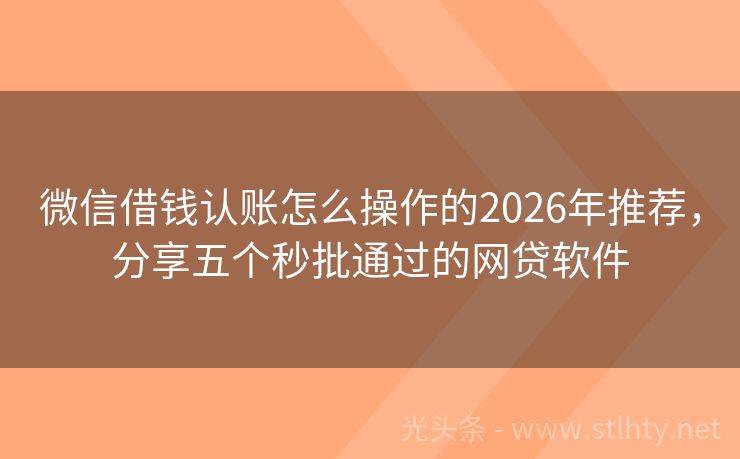 微信借钱认账怎么操作的2026年推荐,分享五个秒批通过的网贷软件 急需资金?别担心,我们为您精选了5个不看征信、下款无难度的微信借钱认账怎么操作的,轻松解决您的资金难题!快来试试吧! 2026年的微信借钱认账怎么操作的有:现金秒贷通宝融、民贷天下、现金侠易贷、口袋金贷、珊瑚买单等。 一、现金秒贷通宝融 现金秒贷通宝融在用户提交申请后进行电话回访,大家要注意接听。产...