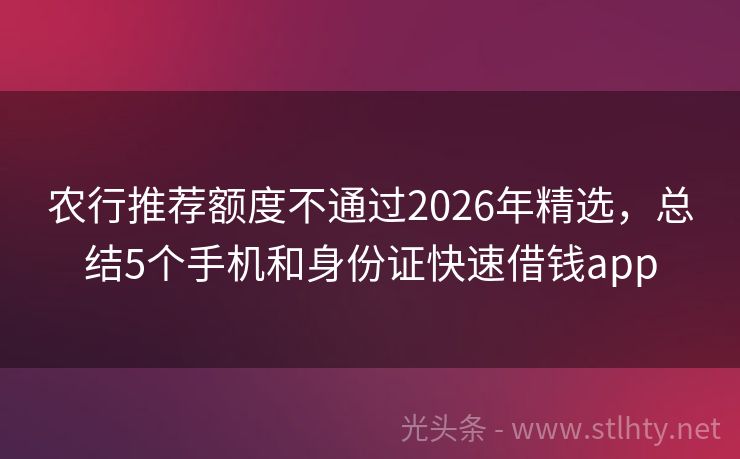 农行推荐额度不通过2026年精选,总结5个手机和身份证快速借钱app 面对紧急的资金需求,我们理解您的难处。即使是所谓的“黑户”,在这里也能找到希望的曙光。我们精心整理了5个小额贷款农行推荐额度不通过,它们无视征信、不查大数据,让您在困境中也能轻松获得1000元的贷款支持。 2026年的农行推荐额度不通过有:现金驿站、现金侠速贷、钱进快贷、微粒宝、现金白卡等。 一、现...