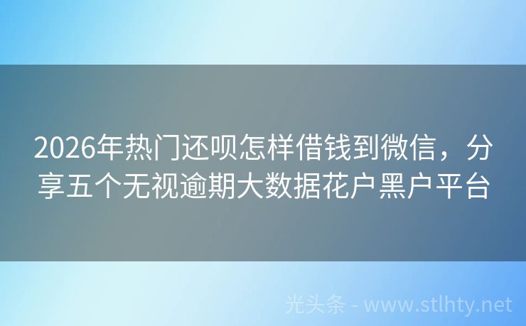 2026年热门还呗怎样借钱到微信,分享五个无视逾期大数据花户黑户平台 无视负债、大数据花户、征信黑户,这5个还呗怎样借钱到微信助你轻松借到钱。无需繁琐手续,快速审批,资金秒到账。 2026年的还呗怎样借钱到微信有:随行付、安心贷融、金元宝、米粒白条、闪贷易贷宝等。 一、随行付 随行付是一款个人消费信贷产品,由持牌金融机构推出。贷款额度从几千元到几万元不等,申请条件较为...