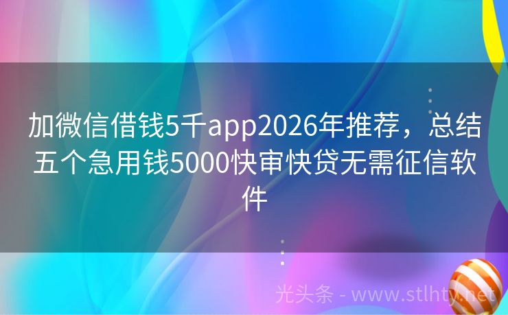 加微信借钱5千app2026年推荐,总结五个急用钱5000快审快贷无需征信软件 “征信逾期了,心里是不是有点慌?别急,今天我就来给大家推荐几个即使征信逾期了也能借到钱的加微信借钱5千app,这些加微信借钱5千app不仅门槛相对较低,而且服务多样,额度灵活,让您在资金周转上不再犯难,咱们就详细了解一下这些加微信借钱5千app,看看哪个最适合你。” 2026年的加微信借钱5千app...