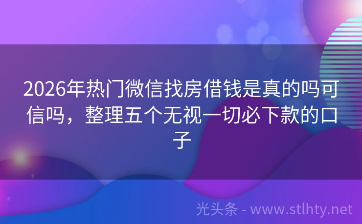 2026年热门微信找房借钱是真的吗可信吗,整理五个无视一切必下款的口子 急用钱?别怕,这几个微信找房借钱是真的吗可信吗助你一臂之力!无需繁琐流程,低门槛审核,即使评分不高也能轻松借到钱。快来试试吧,让资金问题不再成为你的困扰! 2026年的微信找房借钱是真的吗可信吗有:现金易贷、钱速借融通宝、翡翠贷、易捷钱包、玛瑙信贷等。 一、现金易贷 现金易贷是互联网巨头倾力打造的消...