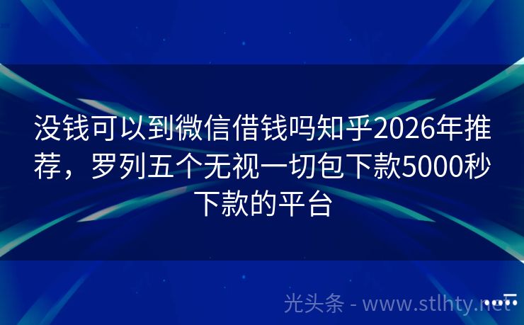 没钱可以到微信借钱吗知乎2026年推荐,罗列五个无视一切包下款5000秒下款的平台 大家好!近年来,身份证贷款因其便捷性和灵活性,受到了越来越多人的青睐,就让我们来聊聊“没钱可以到微信借钱吗知乎”这个话题,我要为大家推荐五个优质没钱可以到微信借钱吗知乎,这些平台不仅利息合理,而且服务周到,让您的贷款之路更加顺畅。 2026年的没钱可以到微信借钱吗知乎有:借款宝融、现金白鸽贷、钱速达...