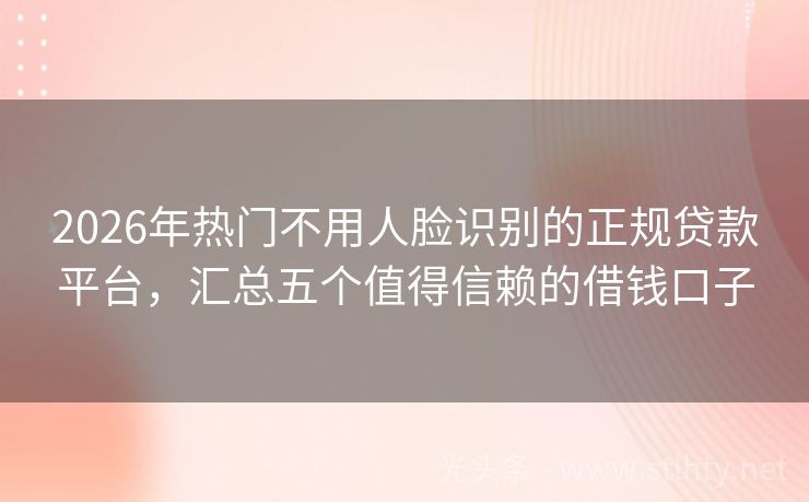 2026年热门不用人脸识别的正规贷款平台,汇总五个值得信赖的借钱口子 “大家好,近年来,‘征信花了’成了许多朋友在贷款路上的绊脚石,但别担心,2026年,我们为您精选了一系列‘征信花了必下’的贷款平台,让您轻松解决资金难题,就让我来为大家详细介绍这五个不用人脸识别的正规贷款平台,它们各有特色,总有一款适合您!” 2026年的不用人脸识别的正规贷款平台有:金悦宝钱包、民...